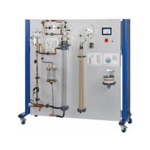 dimostrazione del funzionamento di una sonda geotermica con il principio del tubo di calore tubo di calore in vetro con camicia trasparente di controllo della temperatura acqua come mezzo di lavoro per la dissipazione del calore nello scambiatore di calore alimentazione del mezzo di lavoro tramite la rete di laboratorio o tramite refrigeratore d'acqua WL 110.20 a garantire una temperatura massima dell'acqua di 16°C simulazione del bilancio energetico di una pompa di calore nel software refrigerante R1233zd, GWP: 1 software per acquisizione dati via USB sotto Windows 8.1, 10